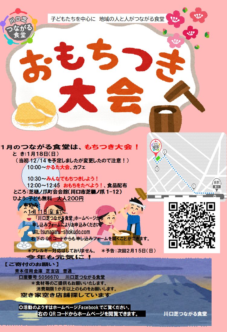 食材準備の関係で、申込み受け付け締め切りを10日前の1月8日(木)にさせていただきます。ご注意ください。