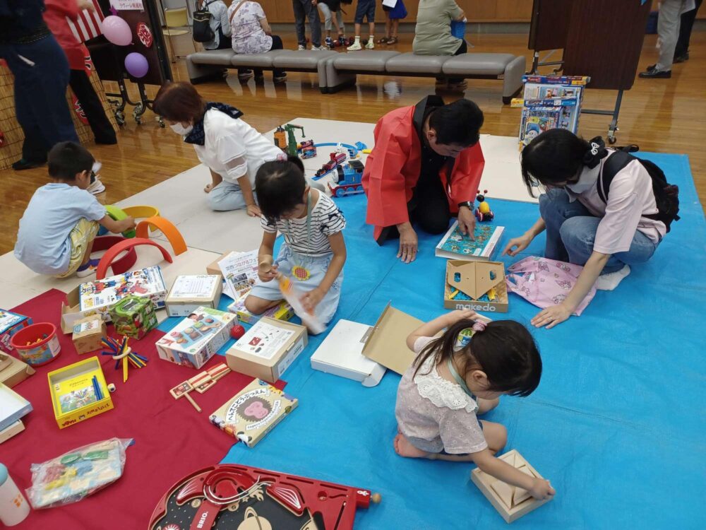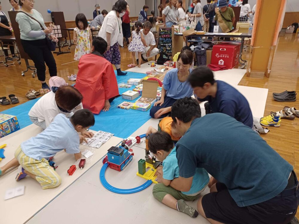 つながる食堂では、スタッフとともに、プラレール、パチンコ、カード、けん玉…たくさんのおもちゃ遊びに子どもたちが熱中していました。