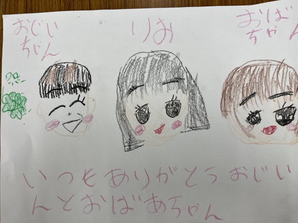 翌日は敬老の日なので、ちびっこたちには、画用紙とクレヨンを渡して、市内あるいは遠方に住む、じいじ👴やばあば👵の絵を描いてもらいました。
