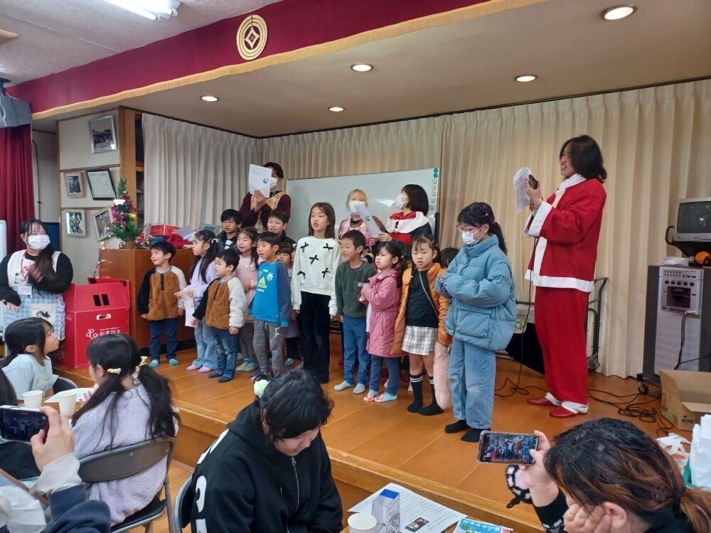 「あわてんぼうのサンタクロース」🎅の歌では、ちびっこたちをステージに呼んで、元気に合唱しました。
